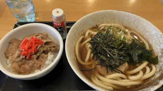 青森県弘前市亀甲町90-1 、 cafe KITAMON (カフェ キタモン) わかめうどんと豚焼き肉丼 わかめうどんと豚焼き肉丼、cafe KITAMON (カフェ キタモン)、ランチセット